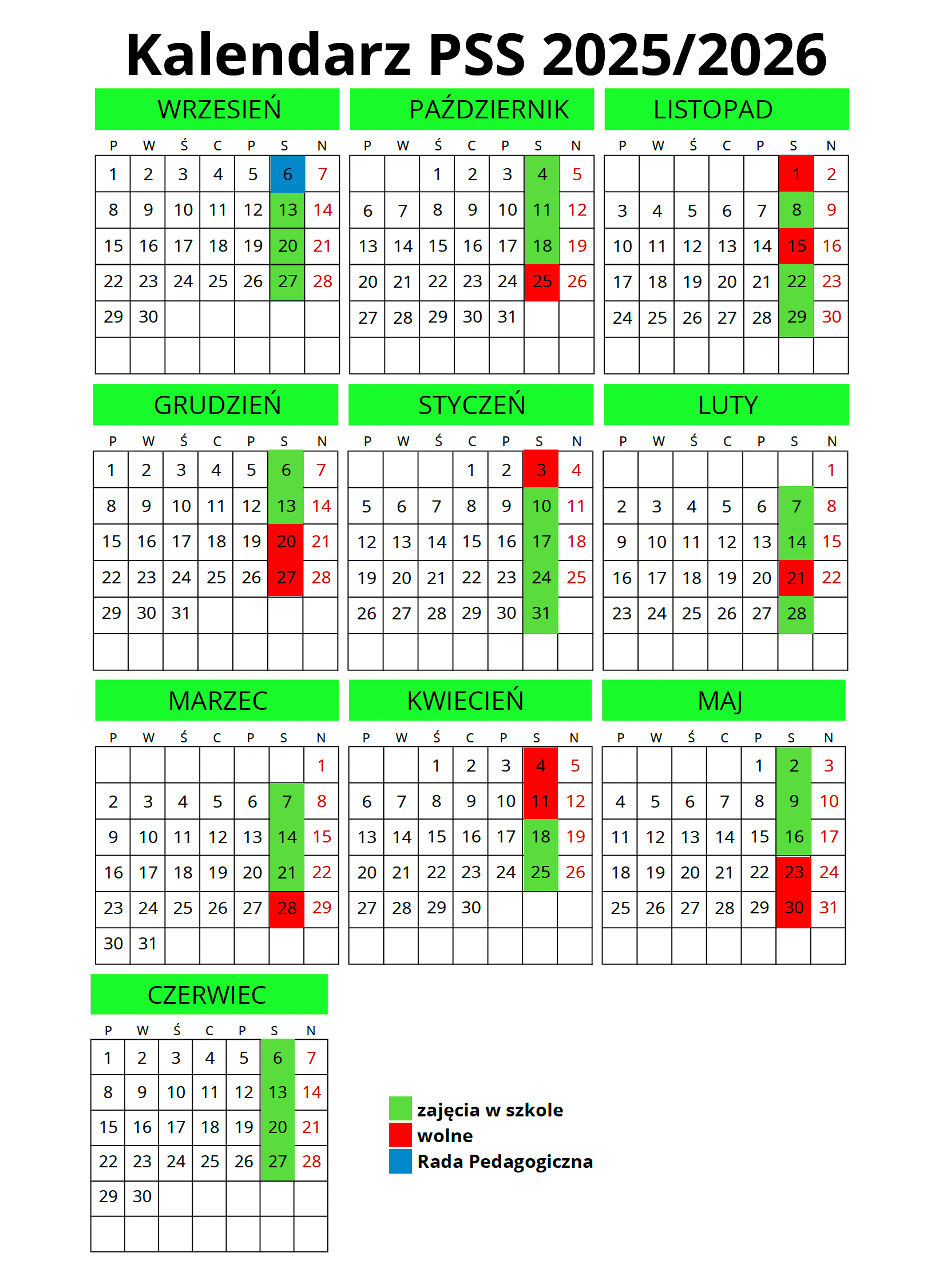 Kalendarz zajęć szkolnych jest ogłaszany na początku roku szkolnego i zazwyczaj odbywają się one we wszystkie soboty, z wyjątkiem świąt Bożego Narodzenia i Wielkanocy oraz sobót w trakcie ferii szkolnych. Zajęcia rozpoczynają się o 9:00 i kończą o 12:00.